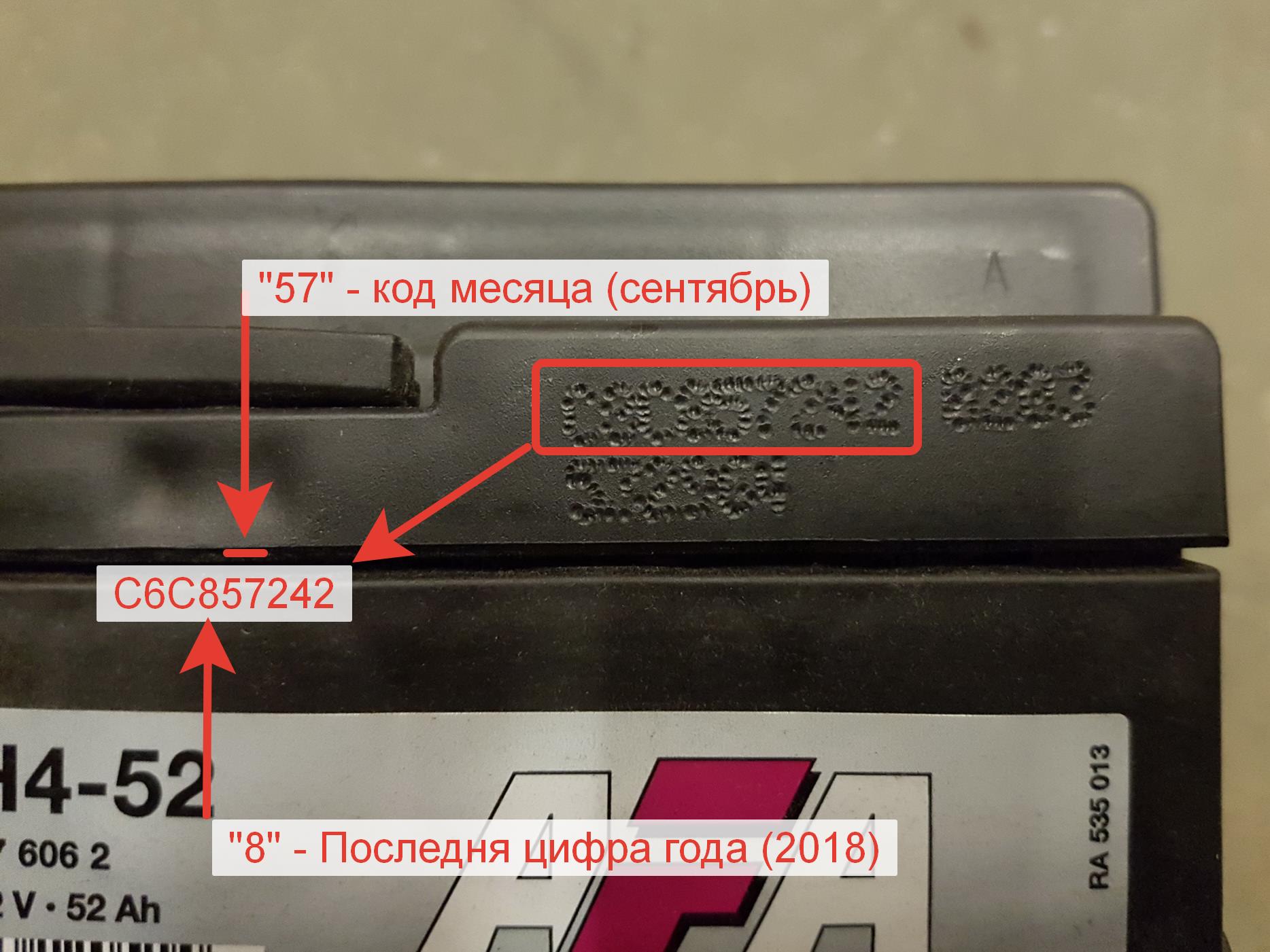 Дата изготовления аккумуляторов АФА, как и многих других АКБ производства Johnons Controls, указана на верхней плоскости корпуса батареи, на противоположной от клемм стороне.