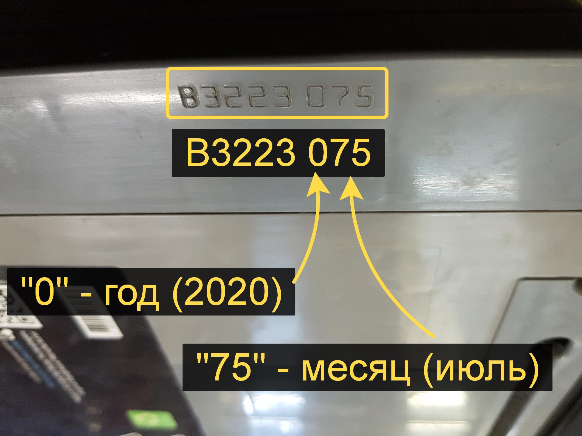 Пример: B3223 075, где 0 = 2020 год, 75 – июль месяц