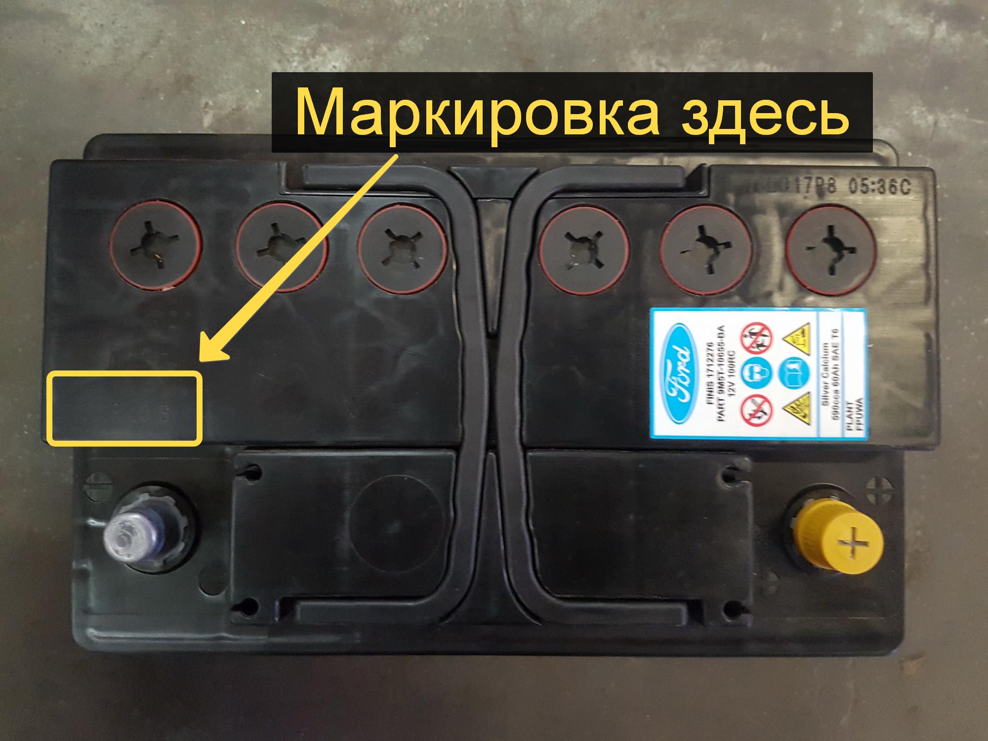 Дата выпуска аккумулятора Ford Standard (Ford Silver Calcium) выжжена на верхней крышке корпуса АКБ слева, возле минусовой клеммы.