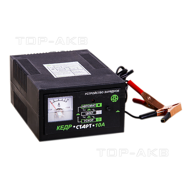 Трансформаторное зарядное устройство Кедр 10а предназначено для зарядка автомобильных аккумуляторов с максимальной емкостью до 80 Ампер час. При обычном режиме работы ЗУ номинальный ток заряда составляет 4-4,5 Ампер. В режиме ускоренной зарядки максимальный ток может составлять 10 Ампер. Также данное устройство подходит для стартерных АКБ других типов, кроме герметичных.