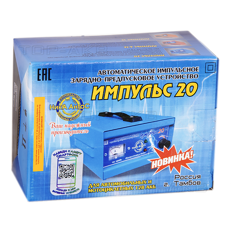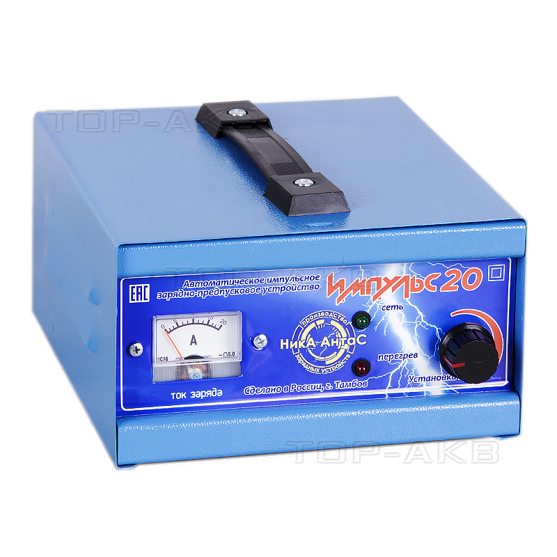 Импульсное зарядно-предпусковое устройство Импульс 20 предназначен для заряда автомобильных и мотоциклетных 12 В АКБ различной емкости в полностью автоматическом режиме с возможностью ручной регулировки силы зарядного тока.