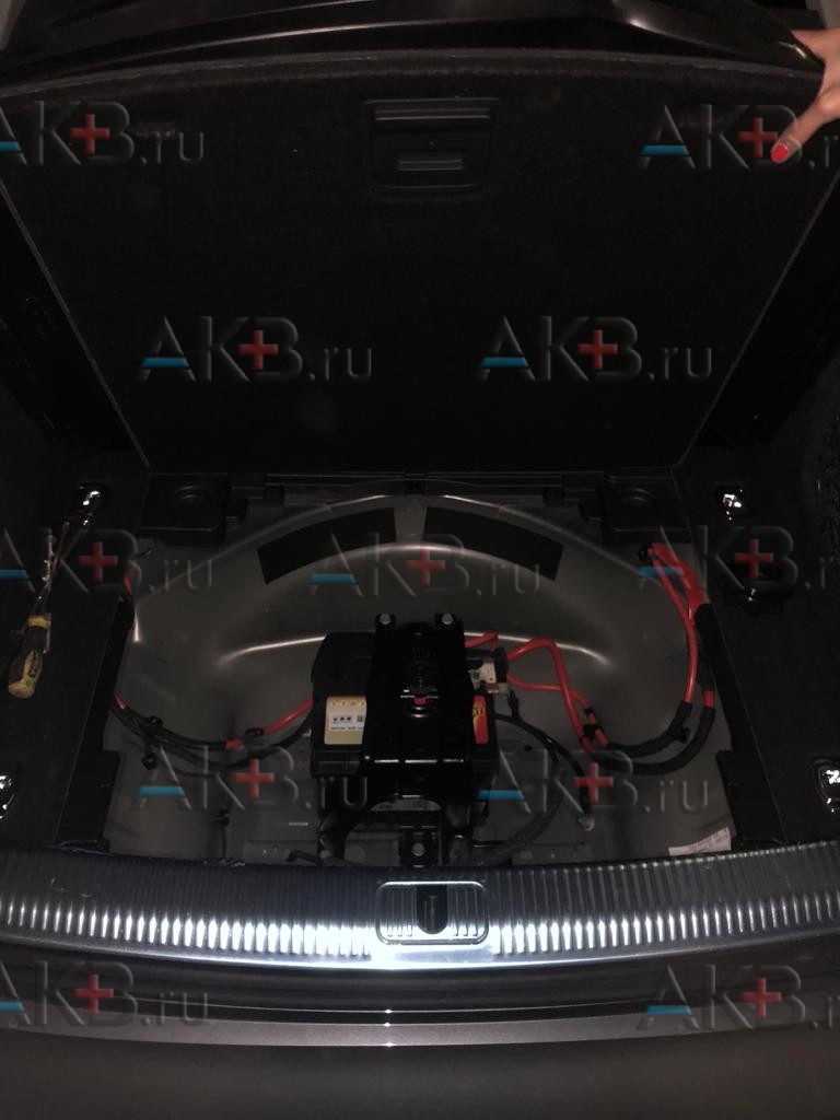 Для доступа к АКБ нужно вынуть из багажника докатку, ящики с инструментами и домкрат. После этого снимается сабвуфер. Он крепится при помощи 3 гаек на 8. Далее вокруг основания скобы, которая крепит докатку, нужно открутить 3 болта на 10. Приподняв скобу, вы получите доступ к аккумулятору Ауди А5. Теперь нужно открутить клеммы (ключ на 8): сначала «-», затем «+», газоотводящую трубку, и можно извлекать старую АКБ. Установка новой – в обратном порядке.