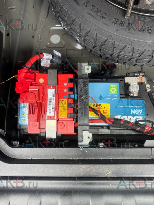 В f15, e53 и e70 аккумуляторная батарея находится в багажнике. Процесс замены примерно одинаков. Правда в х5, чтобы добраться до АКБ требуется пройти своеобразный «квест». Нужно достать запаску, ключом на 10 снять компрессор пневмоподвески и его кронштейны (ключ на 10).